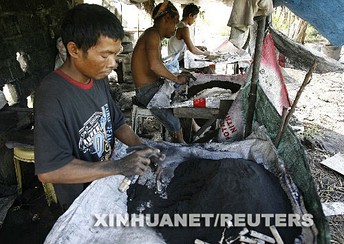 ກຳມະກອນຂອງໂຮງງານໝາກກະໂພກອ້າງໝາກກະໂພກທີ່ເຮັດເປັນບັ້ງໄຟ