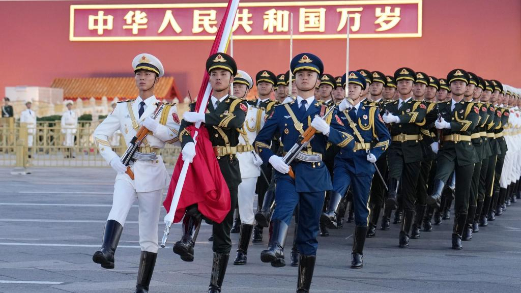 ຈັດພິທີຊັກທຸງຊາດຈີນສູ່ຍອດເສົາຢູ່ສະໜາມຫຼວງທ່ຽນອ່ານເມີນ