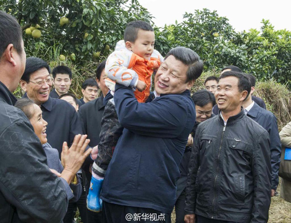 ທ່ານສີຈິ້ນຜິງອຸ້ມເດັກຂອງຊາວສວນປູກຫມາກໄມ້.