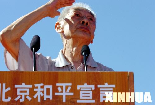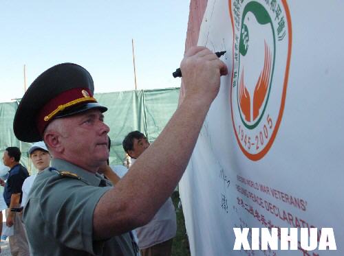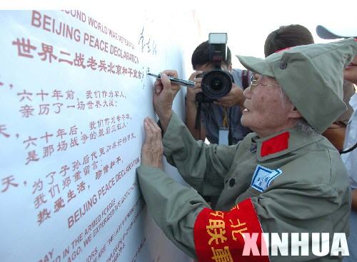 ນັກລົບເກົ່າຂອງສົງຄາມໂລກຄັ້ງທີສອງບັນດາປະເທດເຊັນ"ຄຳຖະແຫຼງການສັນຕິພາບປັກກິ່ງ"ຢູ່ປັກກິ່ງ