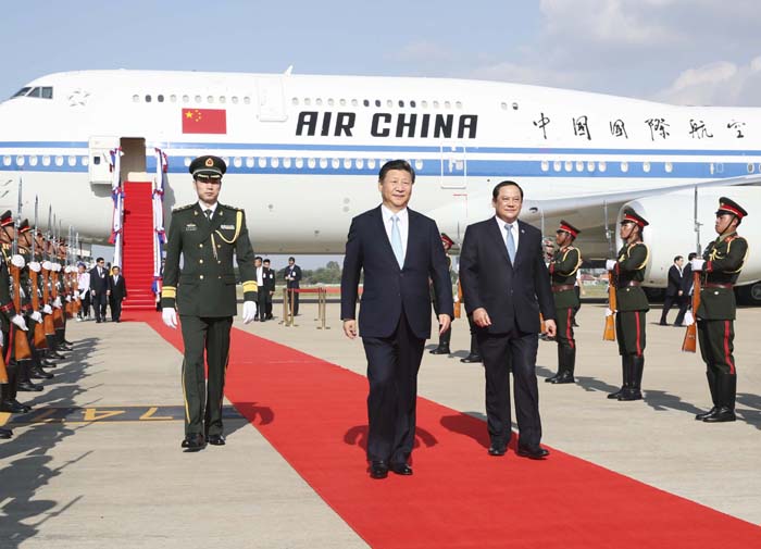 ຂະບວນລົດຂອງທ່ານສີຈິ້ນຜິງໄດ້ເດີນອອກຈາກສະໜາມບິນມຸ່ງໜ້າສູ່ໂຮງແຮມ, ຢູ່ທາງອອກສະໜາມບິນໄດ້ຕິດຮູບພາບໃຫຍ່ຂອງຜູ້ນຳສອງປະເທດຈີນລາວ. ທຸງຊາດສອງປະເທດຈີນລາວກໍປິວສະບັດຢູ່ຕາມສອງຟາກຂອງຖະໜົນຫຼາຍສາຍ ແລະ ແຂວນປ້າຍຄຳຂວັນຕ້ອນຮັບຢູ່ຕາມຫົວຖະໜົນ. ຂະນະທີ່ຊາວໜຸ່ມເຍົາວະຊົນກໍຢືນຢູ່ສອງຂ້າງຖະໜົນ ແລະ ໂບກທຸງຊາດສອງປະເທດ ເພື່ອສະແດງຄວາມຮັກແພງຕໍ່ມິດຕະພາບຈີນ-ລາວ ແລະ ຄວາມປິຕິຊົມຊື່ນຕໍ່ການຢ້ຽມຢາມຂອງທ່ານສີຈິ້ນຜິງເທື່ອນີ້.