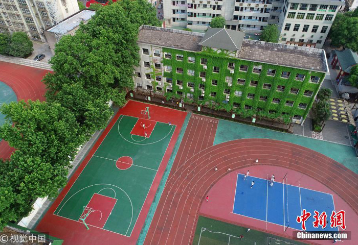 ພືດເລືອຄານຢູ່ຝານອກອາຄານຫຼັງໜຶ່ງໃນໂຮງຮຽນປະຖົມເມືອງຊ່ຽງຢາງສວຍງາມຫຼາຍ