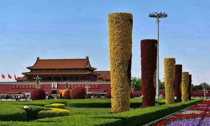 ເພື່ອເປັນສ່ວນສຳຄັນເຮັດໃຫ້ເວທີປຶກສາຫາລືສຸດຍອດການຮ່ວມມືສາກົນ "ໜຶ່ງແລວທາງໜຶ່ງເສັ້ນທາງ" ທີ່ຈະຈັດຂຶ້ນຢູ່ນະຄອນຫຼວງປັກກິ່ງແຕ່ວັນທີ 14 ຫາ 15 ພຶດສະພານີ້ປະສົບຜົນສຳເລັດແລະສ້າງຄວາມປະທັບໃຈໃຫ້ແກ່ແຂກເມືອງ, ຄະນະກຳມະການຄຸ້ມຄອງບໍລິຫານຕົວເມືອງປັກກິ່ງໄດ້ເລັ່ງສ້າງພມູບພາບໃຫ້ສວຍງາມດ້ວຍຫວັງໃຫ້ "ໃນຖະໜົນເສັ້ນໜຶ່ງເຕັມໄປດ້ວຍໂຄມໄຟແລະທຸງທິວໝຶ່ນກວ່າຜືນ, ແທ່ນດອກໄມ້ 7 ແຫ່ງແລະພາບພັນກວ່າໃບ", ຈາກນີ້ໃນການອອກແບບທັງໝົດນັ້ນໄດ້ຕິດພັນກັບ "ໜຶ່ງແລວທາງໜຶ່ງເສັ້ນທາງ" ແລະທຸກສິ່ງທຸກຢ່າງຈະສຳເລັດກອ່ນວັນທີ 12 ພຶດສະພານີ້.